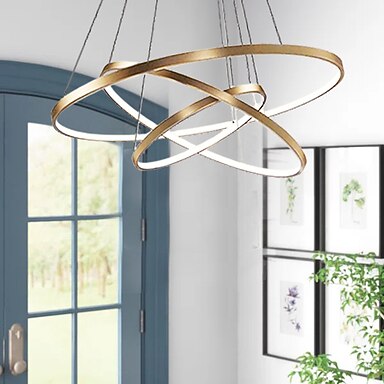 Lámpara colgante led de 3 luces 80/60/40cm círculo diseño cepillado mate acabados pintados en aluminio dorado luces de salón comedor modernas solo regulables con mando a distancia