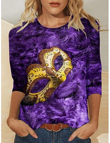 Camisa de T Shirt de Mujeres Carnaval Gráfica de Moda Casual de Manga Larga Cuello Redondo Tops Regulares Impresión Diaria Fin de Semana Azul Negro Púrpura Verano Primavera Otoño