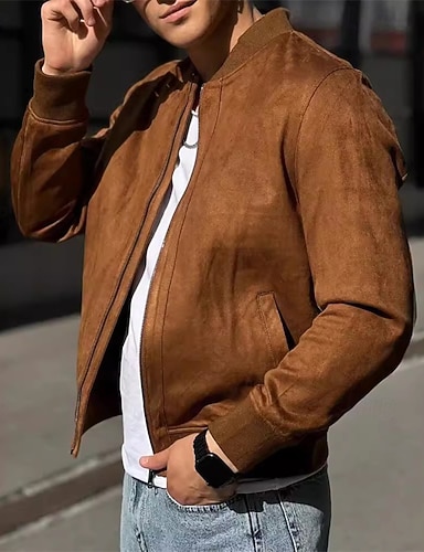 Hombre Chaqueta de gamuza sintética Chaqueta casual Vacaciones Diario Mantiene abrigado Bolsillo Otoño Invierno Plano Moda Clásico Escote Chino Regular Marrón Verde Trébol Chaquetas