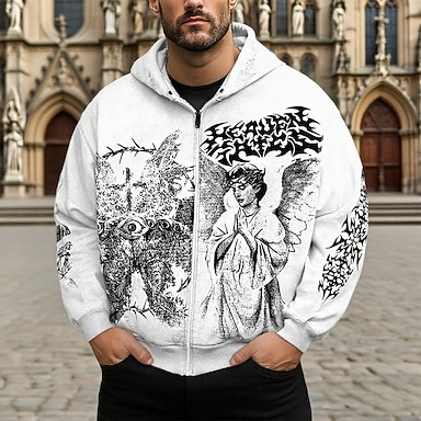 Hombre Graphic Ángel Sudadera Moda Diario Casual Manga Larga Con Capucha Vacaciones Fiesta Ropa de calle Festival Negro Blanco Rojo Cerrar Bolsillo Estampado Primavera Otoño Diseñador S M L XL 2XL 3XL