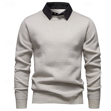Hombre Suéter de punto Estriado Tejer Tops regulares De Punto Plano Cuello Barco Moda Básico Vacaciones Ropa Cotidiana Ropa Otoño Invierno Negro Gris S M L