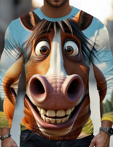 Hombre Animal 3D Gracioso Camiseta Manga Larga Camiseta Impresión 3D Cuello Barco Camisa Moda Básico Casual Diario Calle Azul Piscina Blanco 1 Blanco Verano Primavera Ropa S M L XL XXL XXXL