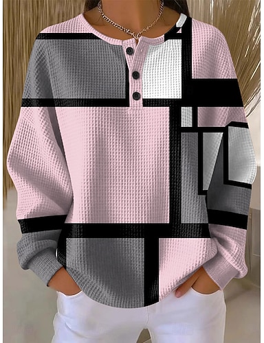 Mujer Sudaderas Botones Graphic Geométrico Bloque de color Moda Casual Estampado Manga Larga Cuello Barco Escote Redondo Tops regulares Casual Calle Azul Piscina Rosa Morado Verde Trébol Otoño