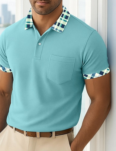 Hombre Camiseta de golf Camisetas polo piqué Negocio Casual Cuello polo acanalado Manga Corta Moda Básico Color sólido Plaid Botones Verano Primavera Primavera & Otoño Ajuste regular Verde Claro