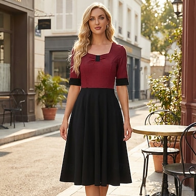 Vestido de Fiesta de Largo a la Rodilla en A-Line Vestido de Cóctel Vestido de Invitada de Boda Vestido para la Madre de la Novia Mangas Cortas Sin Hombros Fiesta Elegante Vintage con Color Sólido