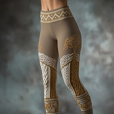 Mujer Vikingo Polainas Leggings cómodos Vacaciones Vintage Estilo Étnico Longitud total Alta cintura Graphic Árbol Estampado Cómodo Elástico Casual Diario Vacaciones Verde Trébol Primavera Otoño