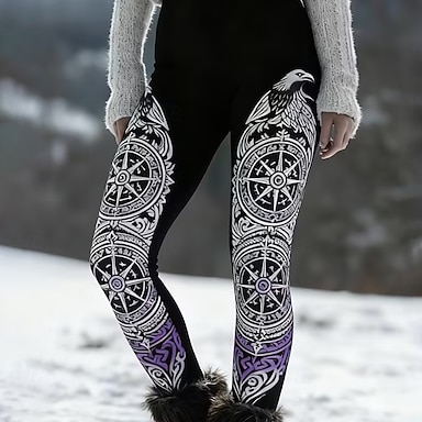 Mujer Vikingo Polainas Leggings cómodos Vacaciones Vintage Estilo Étnico Longitud total Alta cintura Graphic Animal Estampado Cómodo Elástico Casual Diario Exterior Negro Primavera Otoño Invierno