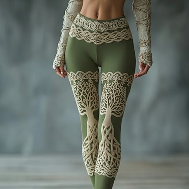 Mujer Vikingo Polainas Leggings cómodos Vacaciones Vintage Estilo Étnico Longitud total Alta cintura Graphic Árbol Estampado Cómodo Alta elasticidad Casual Diario Vacaciones Verde Primavera Otoño