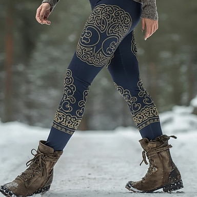 Mujer Vikingo Polainas Leggings cómodos Vacaciones Vintage Estilo Étnico Longitud total Alta cintura Graphic Estampado Cómodo Elástico Casual Diario Vacaciones Azul marino Primavera Otoño Ajustado