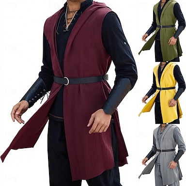 Retro Antiguo Medieval Chales Sin Mangas Ranger élfico Color sólido Disfraz Hombre Vikingo Fantasía Víspera de Todos los Santos Carnaval Fiesta Adulto Chal