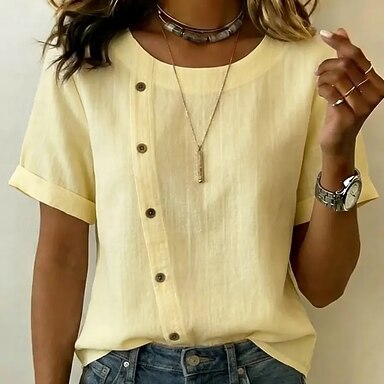 Mujer Sudadera Camiseta / camiseta Top de yoga Cuello Barco Secado rápido Ligero Cómodo Manga Corta Deportes Color sólido Camiseta por Entrenamiento de gimnasio Corriendo Aptitud física Ropa de