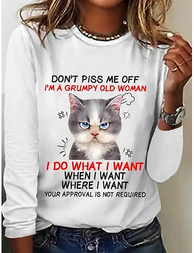 Navidad Mujer Camiseta Estampado Graphic Animal Gato Vintage Moda Elegante Manga Larga Cuello Barco Tops regulares Diario Fin de semana Azul Piscina Negro Blanco Rosa Verde Trébol Primavera Otoño