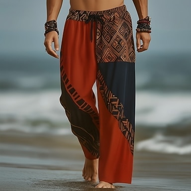 Hombre Geométrico Bloque de color Pantalones Pantalones anchos Pantalones casuales Media cintura Moda Hogar Exterior Vacaciones Cintura elástica con cordón Pantalones tipo lino con bolsillos Verano