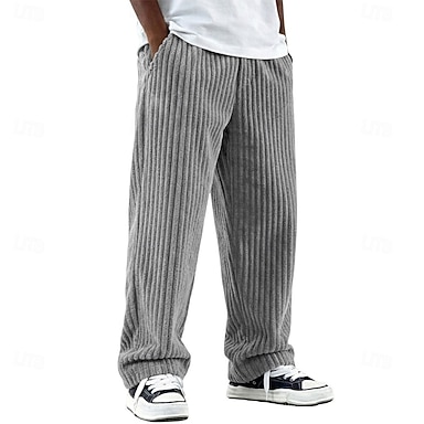 Hombre Pantalones Pantalones de Pana Pantalones de invierno Pantalones casuales Pantalones anchos Correa Pierna recta Color sólido Comodidad Longitud total Casual Diario Exterior Moda Estilo clásico