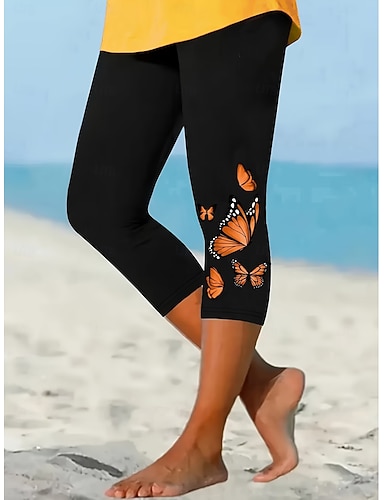 Mujer Chinos Polainas Vacaciones Vintage Ropa de calle Capris Alta cintura Mariposa Estampado Comodidad Suave Cómodo Alta elasticidad Diario Exterior Vacaciones Morado Fucsia Naranja Caqui Verano