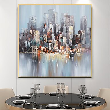 Pintura al óleo hecha a mano lienzo arte de la pared decoración moderna ciudad abstracta arquitectura para la decoración del hogar enrollado sin marco pintura sin estirar