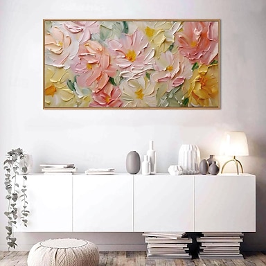 Pintura al óleo hecha a mano lienzo arte de la pared decoración flores de colores originales pintura de paisaje abstracto para la decoración del hogar con marco estirado / sin marco interior pintura