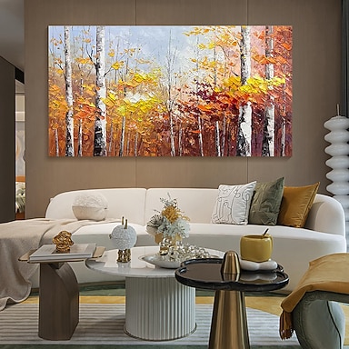 Pintura al óleo hecha a mano, lienzo, decoración de arte de la pared, moderno y grueso paisaje forestal de arboleda al óleo para decoración del hogar, pintura enrollada sin marco y sin estirar