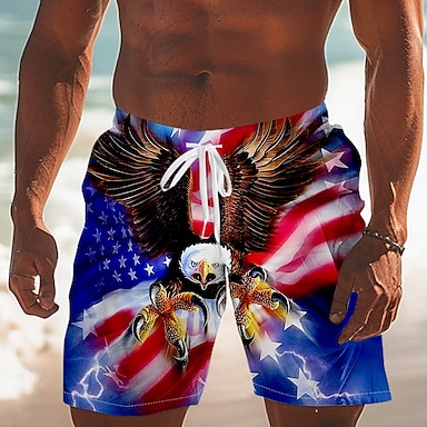 Bañador patriótico de águila de la bandera de EE. UU. para hombres pantalones cortos de baño pantalones cortos de tabla cintura media moda callejera hawaiana vacaciones diario vacaciones cordón