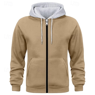Hombre Sudadera Sudadera con capucha y cremallera completa Rojo tinto Negro Blanco Azul Marino Color Camello Con Capucha Plano Retazos Bloque de Color Deporte Casual Diario Ropa de calle Fresco Ropa