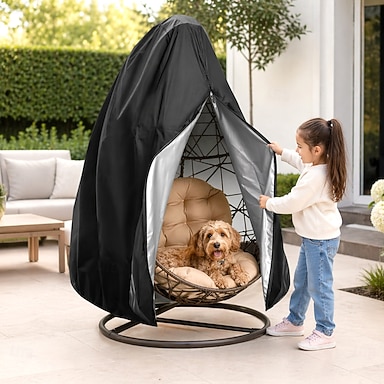 Fundas para muebles de patio, fundas para sillas colgantes tipo huevo con cremallera, impermeables, resistentes a la intemperie, fundas para sillas de exterior, resistentes al viento, 190 x 114 cm, color negro, 1 unidad.