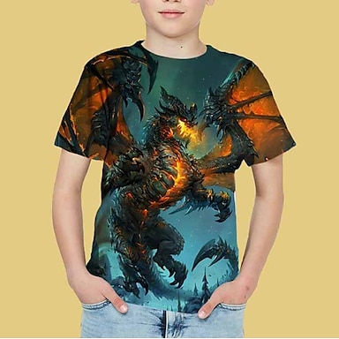 Chico 3D Animal Dragón Camiseta Manga Corta Impresión 3D Verano Activo Fresco Niños 3-12 años Escuela Exterior Diario Ajuste regular