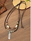 Conjunto de collar con colgante de cuero trenzado para hombre: estilo tribal bohemio con cuentas de aleación y madera para uso informal, festivales y viajes.