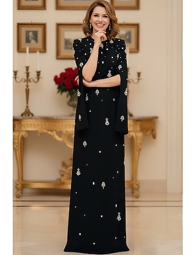 Vestido formal con cola de corte tipo tubo/columna Vestido de noche Vestido elegante Manga larga Escote redondo Fiesta de noche formal con cristales y abalorios