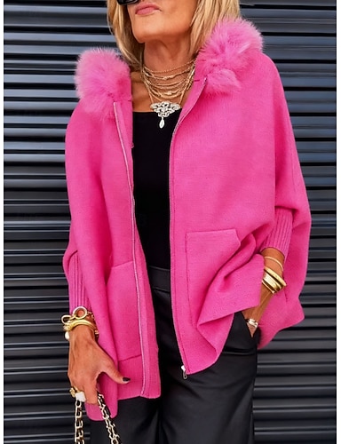 Mujer Abrigo de invierno Abrigo de peluche Abrigo de piel sintética Mantiene abrigado Cómodo Cremallera Tobilleros Exterior Casual Plano Calle Festivos Noche Fin de semana Cremallera Corto Cuello