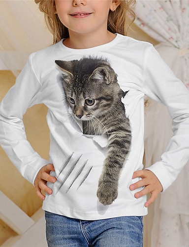 Chica 3D Gato Sudadera Abrigo Abrigos Manga Larga Impresión 3D Otoño Invierno Activo Moda Estilo lindo Niños 3-12 años Exterior Casual Diario Ajuste regular