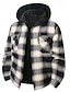 Hombre Bloque de color Ajedrez Abrigo de invierno Chaqueta de lana Abrigo Mantiene abrigado Vintage Ropa Cotidiana Noche Bolsillo Estampado Otoño invierno Con Capucha Manga Larga Negro Vino Rojo