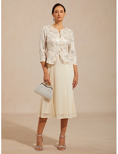 Conjuntos de vestido para mujer, blazer, chaqueta, cómodo, bordado con lentejuelas, elegante, floral, formal, abotonado, cuello redondo regular, corte regular, manga 3/4, ropa de abrigo, beige,