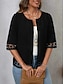 Mujer Chaqueta casual Cómodo Transpirable Encaje Retazos Casual Plano Casual Vacaciones Calle Ropa Cotidiana Frente Abierto Regular Cuello redondo Ajuste regular Manga 3/4 Ropa de calle Negro Verano