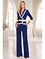 Mujer Trajes de 2 piezas Formal Invitado a la boda Fiesta de Boda Gasa Elegante Manga 3/4 plisada Hasta el Suelo Solapa Redonda