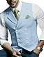 Chaleco de Hombre Chaleco de Rayón Chaleco Vintage Moda Primavera y Verano Botones Playa Boda Cómodo Rayas Doble Botonadura Cuello con Muesca Ajuste Regular Salvia Rosa Celeste Chaleco
