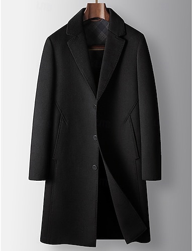 Abrigo de lana para hombre, blazer de tweed, abrigo largo, cuello de muesca, blazer vintage clásico de oficina, color liso, negro y gris, corte entallado, botonadura sencilla, tres botones