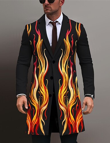 Hombre Fuego Abrigo de invierno Sobretodo Abrigo Mantiene abrigado Cómodo Transpirable Negocios Abstracto Trabajo Usar para trabajar Noche Bolsillo Estampado Otoño invierno Cuello Vuelto Manga Larga