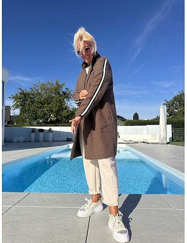 Mujer Chaqueta de lana Mantiene abrigado Cómodo Cremallera Bolsillo Bloque de Color Casual Plano Vacaciones Calle Casual Ropa Cotidiana Regular Cuello Vuelto Ajuste regular Manga Larga Ropa de calle
