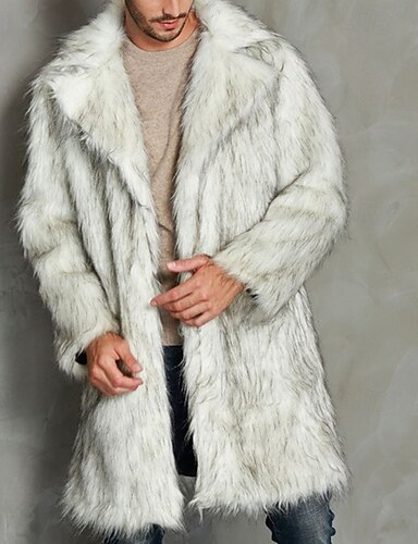Hombre Abrigo de invierno Abrigo de piel sintética Vacaciones Diario Mantiene abrigado Vellón Invierno Plano Moda Ropa de calle Diseño Largo Blanco Chaquetas