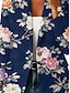 Mujer chaqueta Mantiene abrigado Cómodo Bolsillo Botones Estampado Diario Casual Floral Formal Oficina Casual Botonadura Simple Regular Solapa de Pico Ajuste regular Manga Larga Ropa de calle Azul