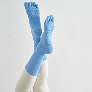 1 Par Calcetines de yoga Calcetines de yoga con agarre Calcetines con cinco dedos del pie Mujer A prueba de resbalones Transpirable Dispersor de humedad Protector Púrpura Cscuro Azur Rosa + Amarillo