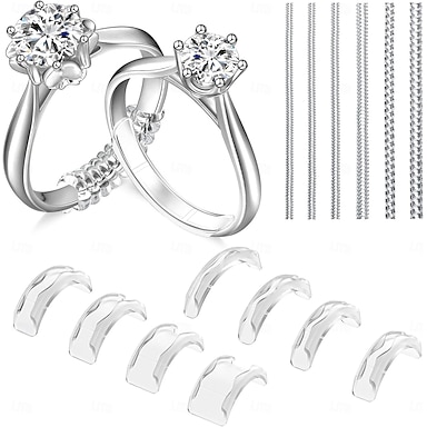 Ajustador de tamaño de anillo para anillos sueltos, paquete de 14 ajustadores de tamaño de anillo invisibles de silicona, protectores de anillo, espaciador, ajustador, redimensionador para mujeres y