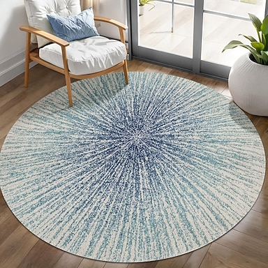 Alfombra redonda con diseño de estrella azul radiante, con estampado plano 2D, moderna alfombra abstracta para dormitorio y sala de estar, diseño antideslizante, elegante alfombra decorativa para el