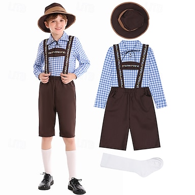 Oktoberfest Lederhosen Camisas Sombrero alpino bávaro Alemán alpino prados Chico Fiesta Festival de Cerveza Paño de estilo tradicional