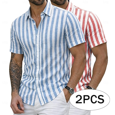 Hombre Camisa Camisa de lino Camisa de verano Camisa de playa Camisas de rayas Tiras verticales Casual Vacaciones Amarillo + azul Rosa + Amarillo Amarillo + verde Azul Marino+Amarillo Manga Corta