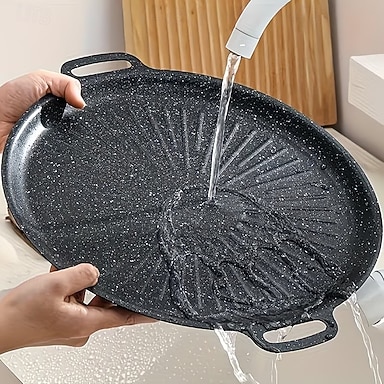 Sartén y cacerola para barbacoa de alta resistencia (1/2 piezas): conducción uniforme del calor para filetes y panqueques perfectos, superficie de hierro fundido fácil de limpiar, asa para colgar,