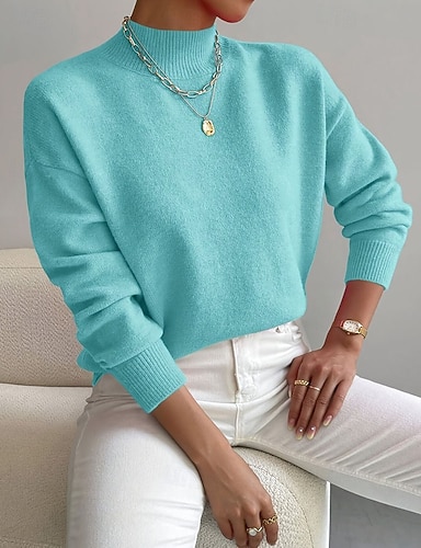 Mujer Camiseta Plano Elegante Vintage Casual Manga Larga Cuello Alto Tops regulares Diario Azul Piscina Rosa Morado Naranja Verde Trébol Primavera Otoño Invierno