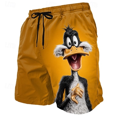 Hombre Pato Argot divertido animales de dibujos animados Pantalones cortos forrados Bañador 2 en 1 Pantalones de Natación Media cintura Hawaiano vacaciones en la playa Bolsillos laterales con forro