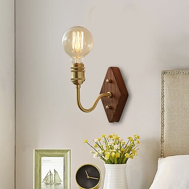 Lightinthebox Aplique de pared de cerámica, lámpara de pared pequeña, lámpara de pared de madera de nogal rústica, lámpara de cabecera vintage, accesorio de iluminación interior para dormitorio, sala
