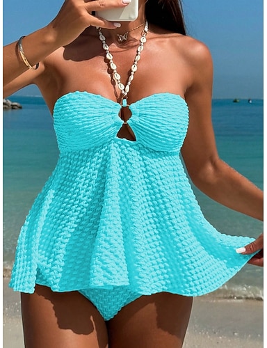 Tankini de mujer de 2 piezas traje de baño sexy con corte con aros coqueto control de abdomen cintura alta delgado sin espalda vacaciones en la playa traje de baño de color sólido con escote halter y